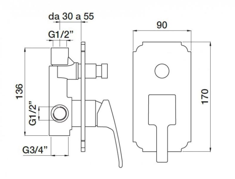 Встраиваемый однорычажный смеситель для душа с переключателем Cezares OLIMP-VDIM-02-L