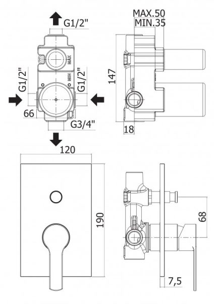 Тип подводки: внутренний (скрытый) монтаж 1/2"