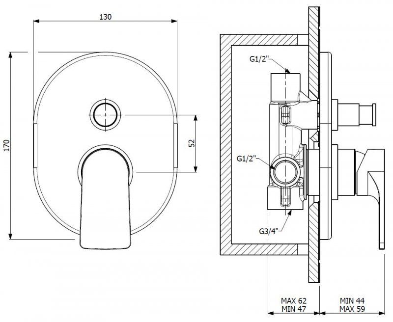 Оснащение: переключатель на 2 выхода, скрытая монтажная часть