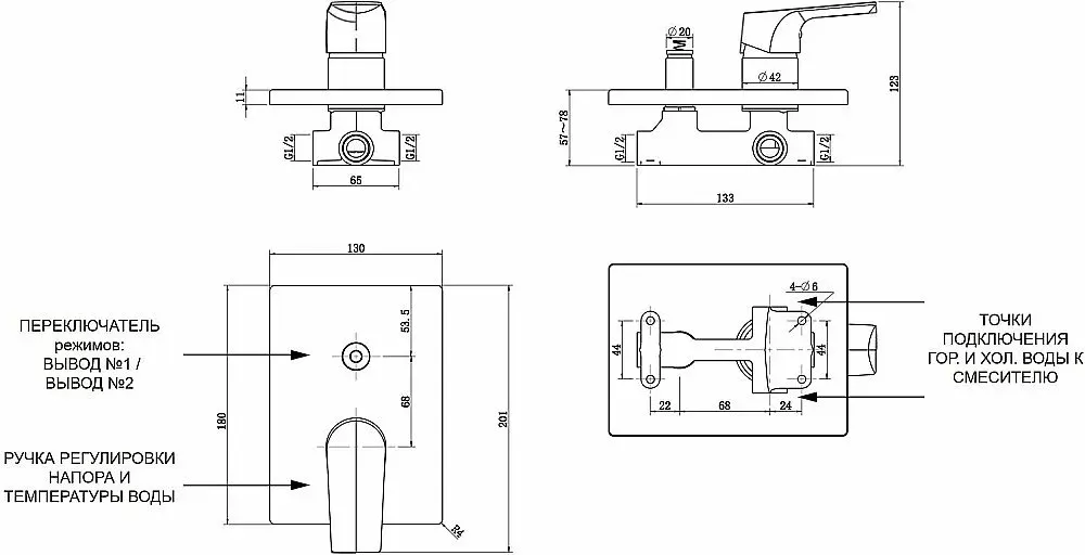 Смеситель для душа Aquanet Static Black AF330-51B предназначен для душа. Своим модернистским дизайном и колористикой он внесет в интерьер помещения особое настроение, подчеркнув его своеобразие. Он выполнен из надежного материала латунь, который не ржавеет, а потому прослужит не создавая проблем. Изделие является исключительным примером достойного качества. Управление в смесителе предусмотрено однорычажное, что порадует любителей такого типа смесителей. Высокую надежность и долговечность смесителю гарантирует керамический картридж, главным преимуществом которого является беспроигрышная конструкция - залог четкой работы в течение длительного времени. Не напрасно гарантия на смеситель – 1 год, в течение которого производитель Aquanet заверяет в его бесперебойной работе. Форма излива в смесителе - нет, а тип - нет. При покупке учтите, что подводка у смесителя жесткая, что необходимо знать для его установки.