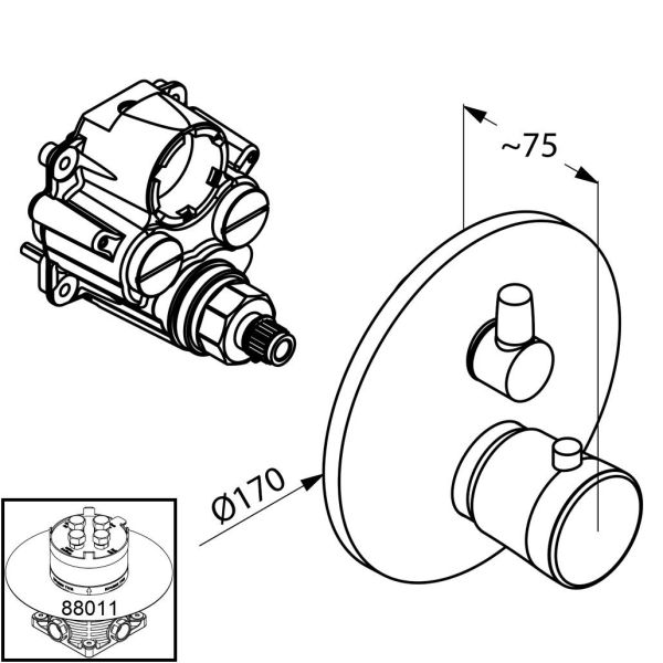 Встраиваемый смеситель для ванны и душа Kludi Balance с термостатом хром 528300575 купить