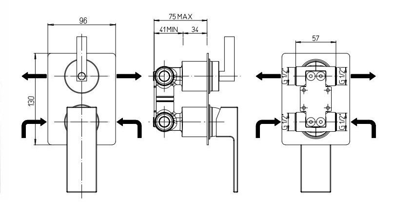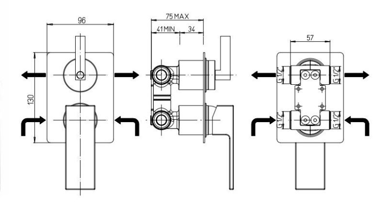 • Встраиваемый монтаж скрывает все соединения и оставляет на виду только рычаг управления, экономя пространство.