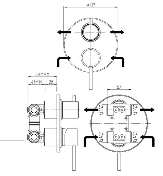 • Встраиваемый монтаж скрывает все соединения и оставляет на виду только рычаг управления, экономя пространство.