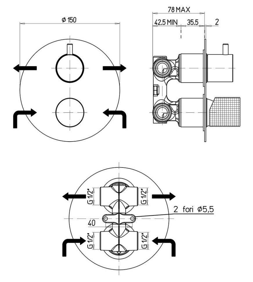 - Встраиваемый монтаж скрывает все соединения и оставляет на виду только рычаги управления, экономя пространство.