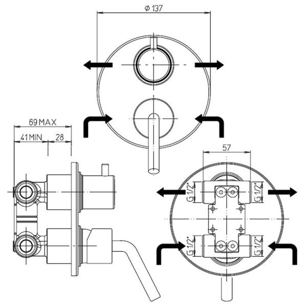 • Встраиваемый монтаж эстетично скрывает все соединения, оставляя в доступе только рычаг управления, что значительно экономит занимаемое пространство.