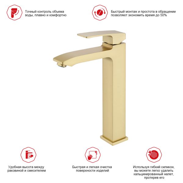 Высокий смеситель для раковины Raglo R01.15.03 золотой сатин купить