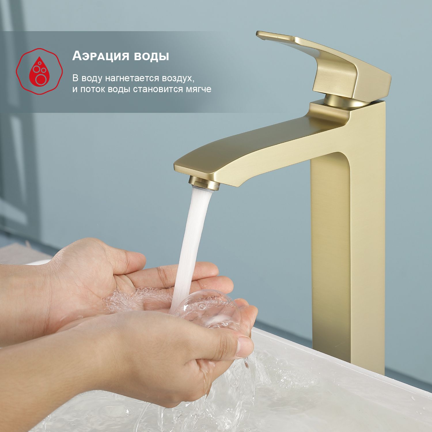 Высокий смеситель для раковины Raglo R01.15.03 золотой сатин