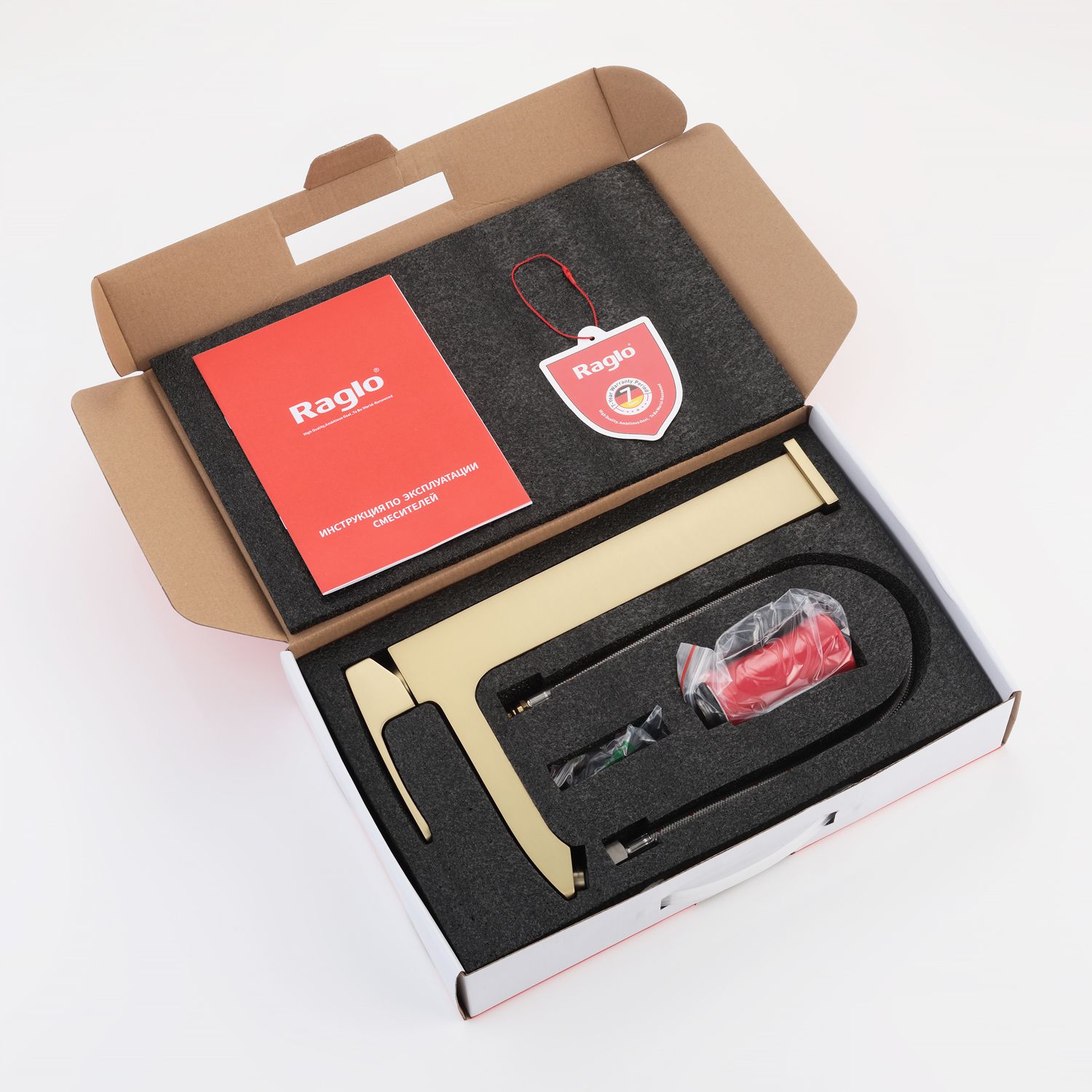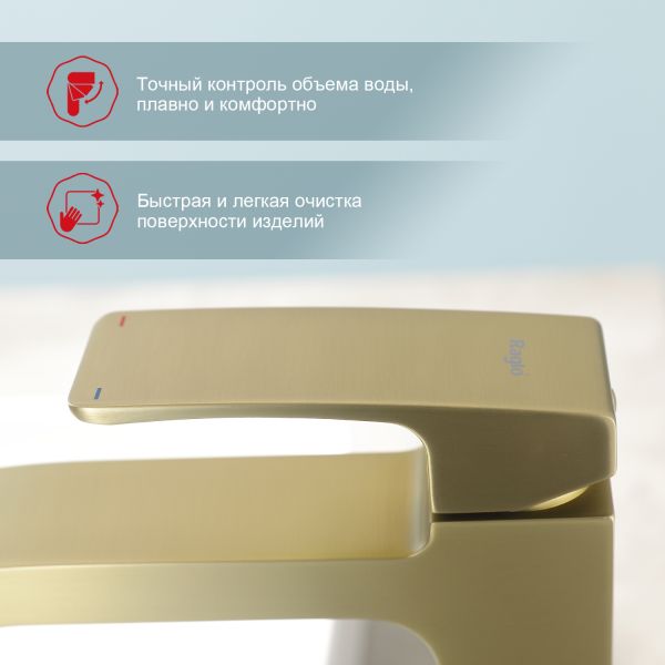 Смеситель для раковины Raglo R01.15.03, сатин золотой. Смеситель для раковины RAGLО имеет повышенную прочность корпуса. Соответствует требованиям международного стандарта. Одна рукоять для регулировки воды. Аэратор гарантирует одинаковый поток воды, сеточка рассеивает напор, вода смягчается. Смеситель устанавливается на гайке, нижняя часть смесителя вставляется в отверстие для монтажа и затягивается гайкой для фиксации. Данный смеситель для умывальника имеет надежный стационарный излив, не меняющий своего положении. Смеситель прекрасно смешивает потоки воды, а помимо этого обладает невысоки показателем шумов. Быстрый монтаж.Гарантия производителя 7 лет.