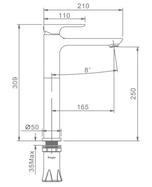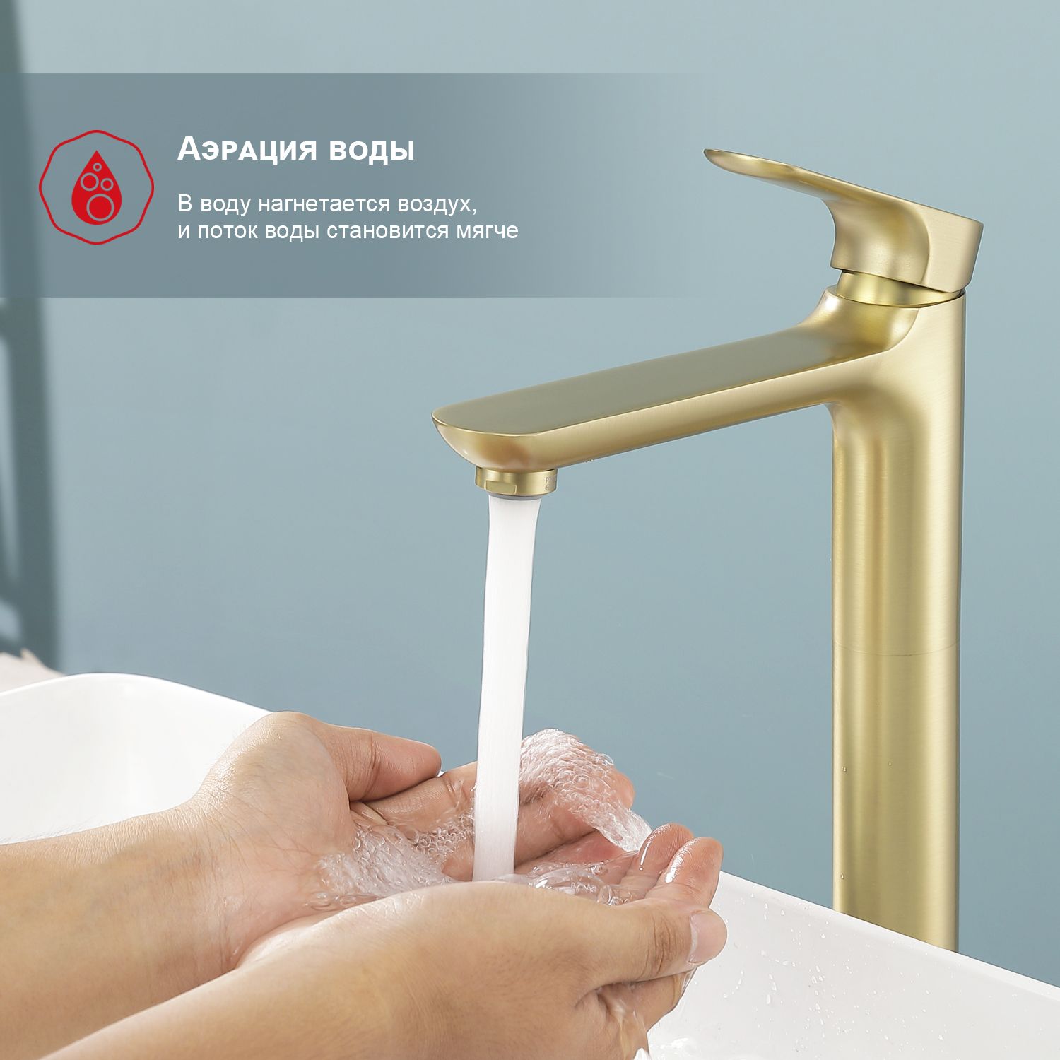 Высокий смеситель для раковины Raglo R03.15.03 золотой сатин купить