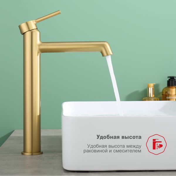 Высокий смеситель для раковины Raglo R20.15.03 золотой сатин