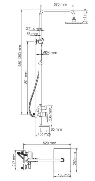 Стойка для душа, Ø 24 мм регулируемая по высоте