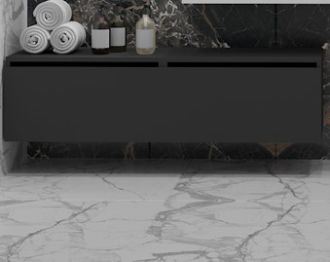 Корпусы тумб и пеналов изготовлены из МДФ и покрыты влагостойким винилом от холдинга LG.