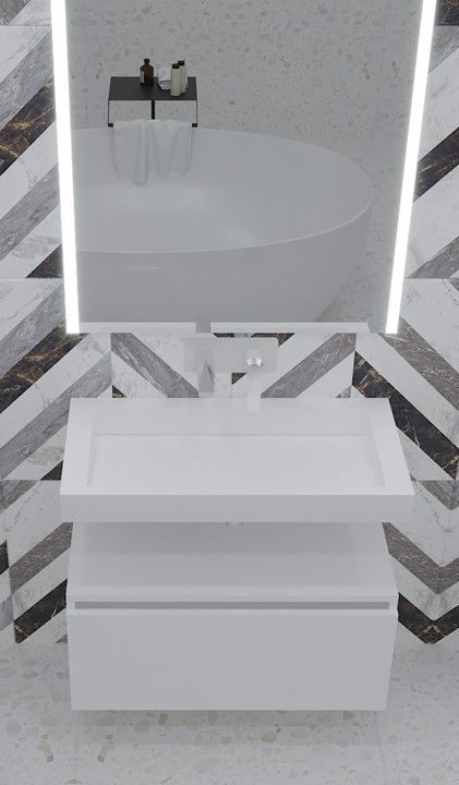 Корпусы тумб и пеналов изготовлены из МДФ и покрыты влагостойким винилом от холдинга LG.