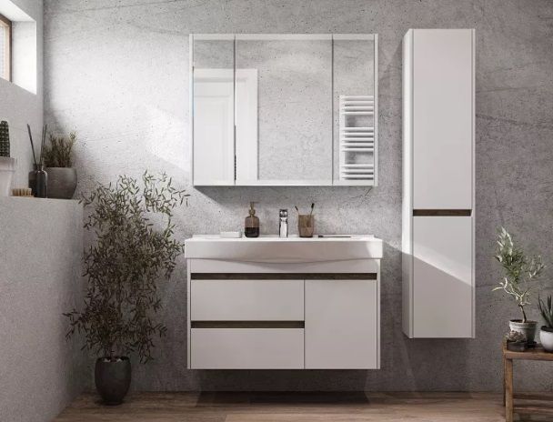 Зеркало-шкаф Акватон Нортон 100 белый глянец не только не только функциональный предмет интерьера ванной комнаты, но прекрасное эргономичное дополнение дизайна, как небольшого, так и крупного помещения.Компания Акватон использует при производстве высококачественные водоотталкивающие материалы (ДСП), соответствующие всем необходимым требованиям безопасности. Серия Нортон отличается превосходным дизайном с соблюдением всех значимых элементов современного стиля. Основным цветом, в котором выполнено зеркало Акватон Нортон является белый, отлично подходящий большинству дизайнерских решений. Зеркало предусматривает удобную и вместительную систему хранения, состоящую из дверей. Качественные доводчики позволяют обеспечить мягкое и тихое закрывание. Важные габариты изделия: ширина 100 см, глубина 13 см, высота 81 см.Страной бренда Акватон является Россия, все товары производятся с выполнением соответствующих стандартов качества, что позволяет быть полностью уверенными в долговечности и надежности. Зеркало-шкаф Акватон Нортон 100 белый глянец правильный выбор в современном дизайне ванной, придающий уникальность всему помещению, при этом сохраняя функциональность.