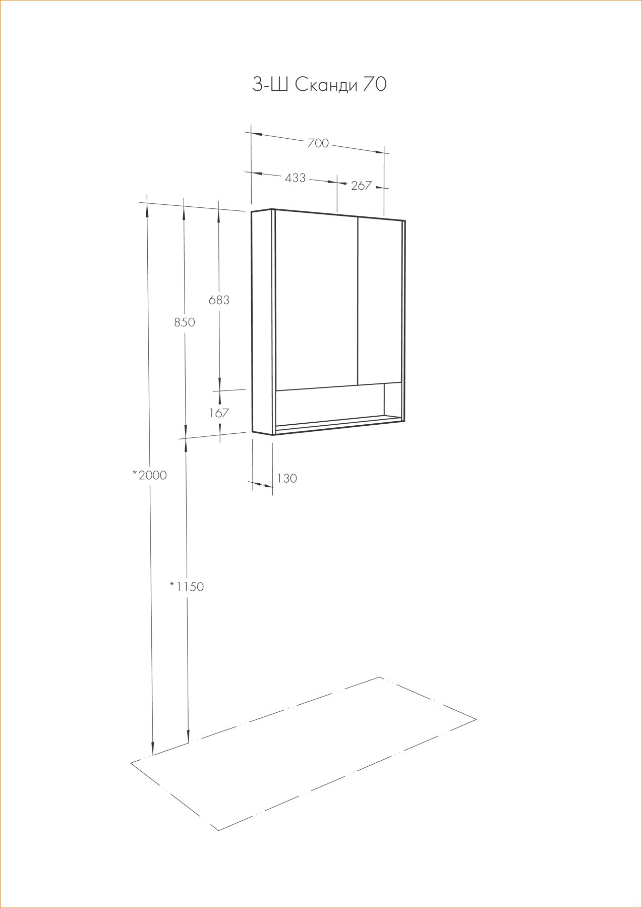Зеркальный шкаф Акватон Сканди 70см белый/дуб верона 1A252202SDB20 купить