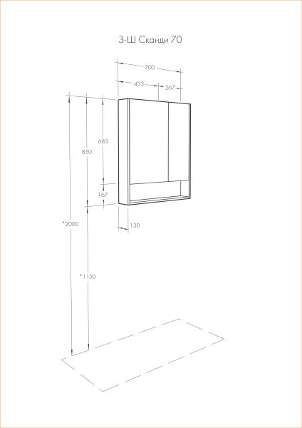 Зеркальный шкаф Акватон Сканди 70см белый/дуб верона 1A252202SDB20
