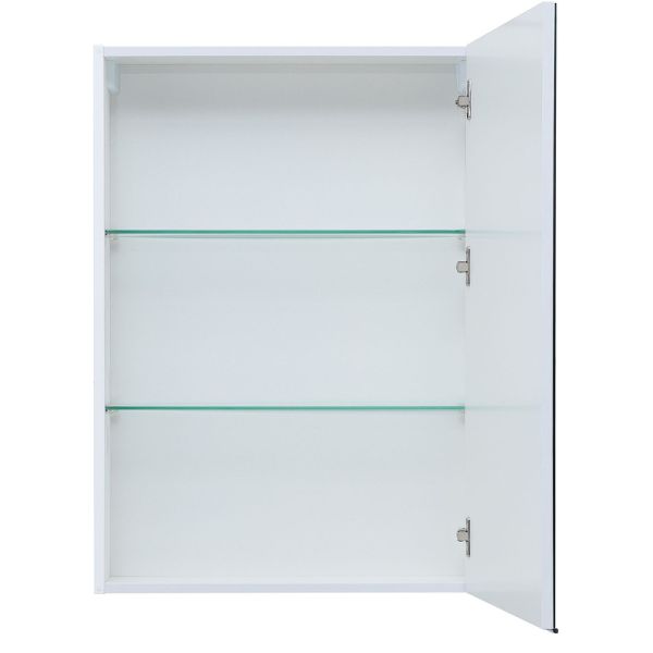 Зеркальный шкаф Aquanet «Алвита» New 60 в белом матовом цвете. Корпус изготовлен из ЛДСП, устойчивой к эксплуатации в условиях высокой влажности. Фасады выполнены из МДФ. Дверца оснащена доводчиком, обеспечивающим плавность и бесшумность закрывания. Внутреннее пространство используют как дополнительное место хранения для небольших предметов — ватных палочек и спонжей, бритвы и зубных щеток.