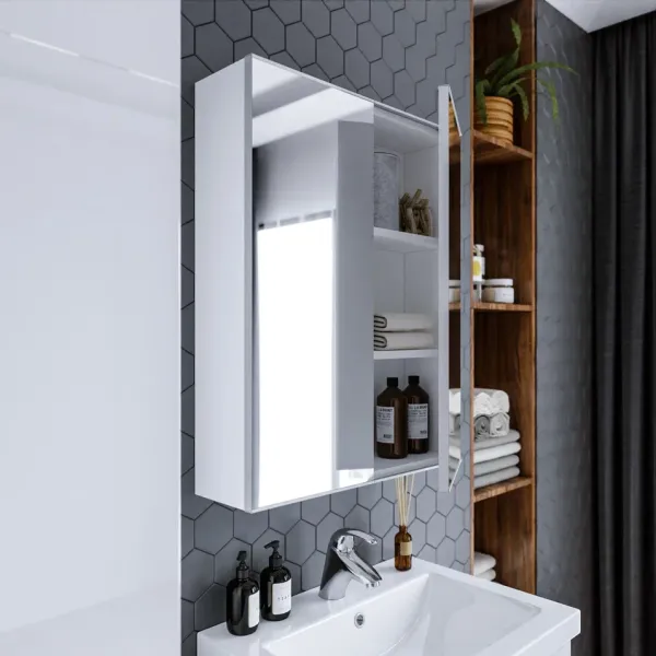 Зеркальный шкаф для ванной комнаты – это стильный акцент, который может преобразить любое пространство. С его элегантными линиями и продуманным дизайном, он идеально вписывается в современный интерьер. Внешняя поверхность шкафа, выполненная из качественных материалов, отражает свет, создавая ощущение простора и уюта.