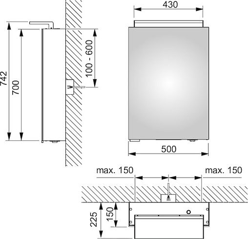 Зеркальный шкаф Keuco Royal 13601171102 50 смKEUCO Royal L1 Зеркальный шкаф, 1 дверца, с подсветкой, петли R, 500х742х150 мм, корп.: сереб. анод.