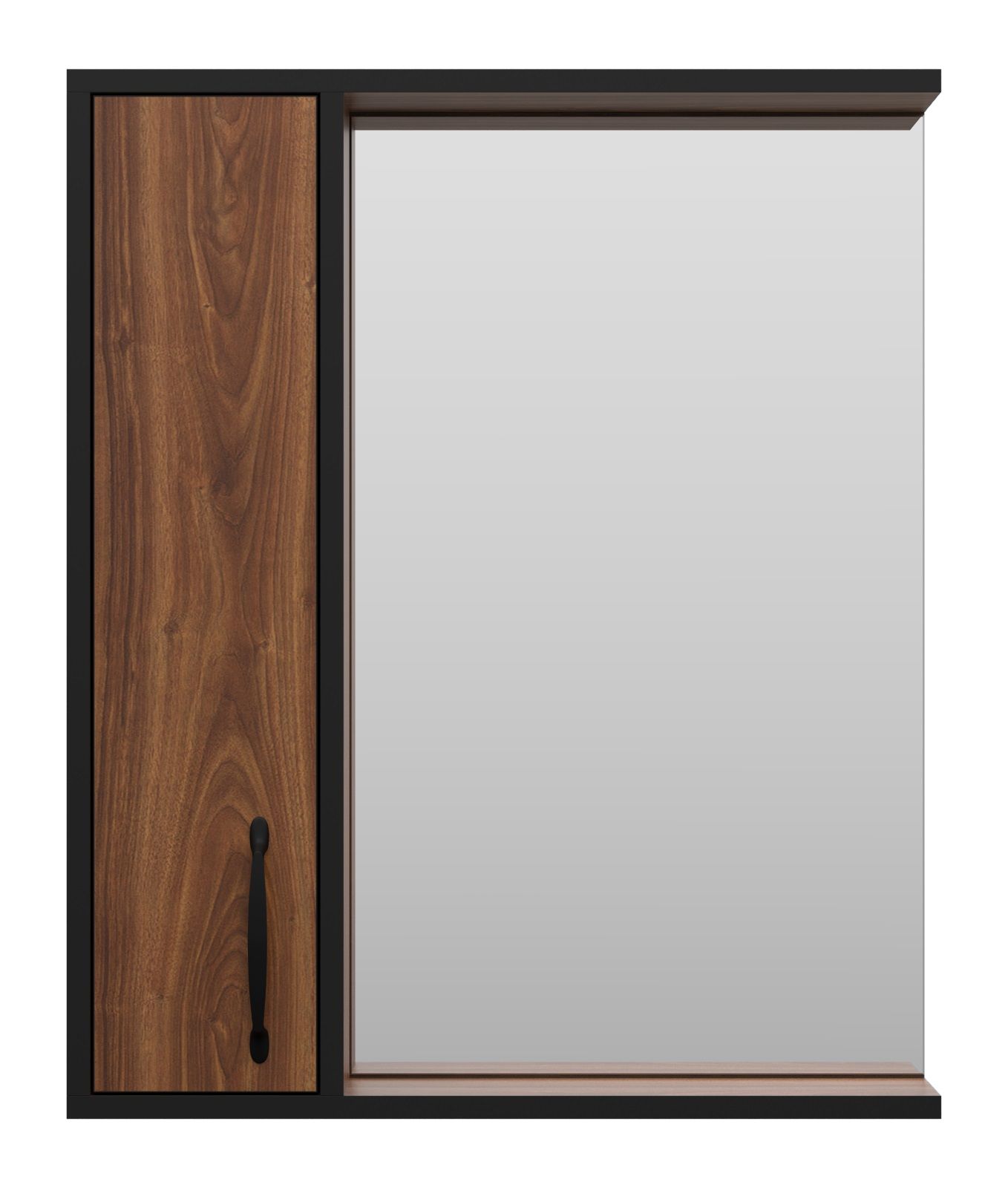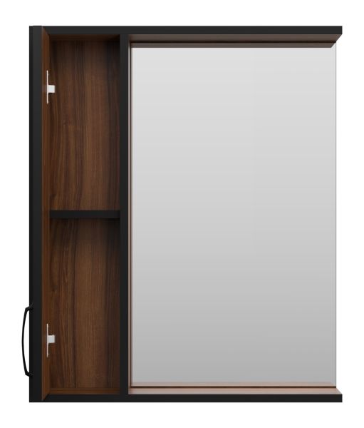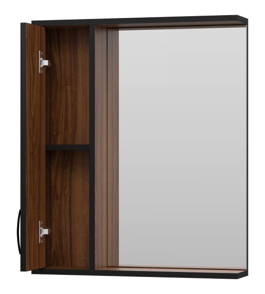 Зеркальный шкаф Misty Кедр 60см левый чёрный/орех