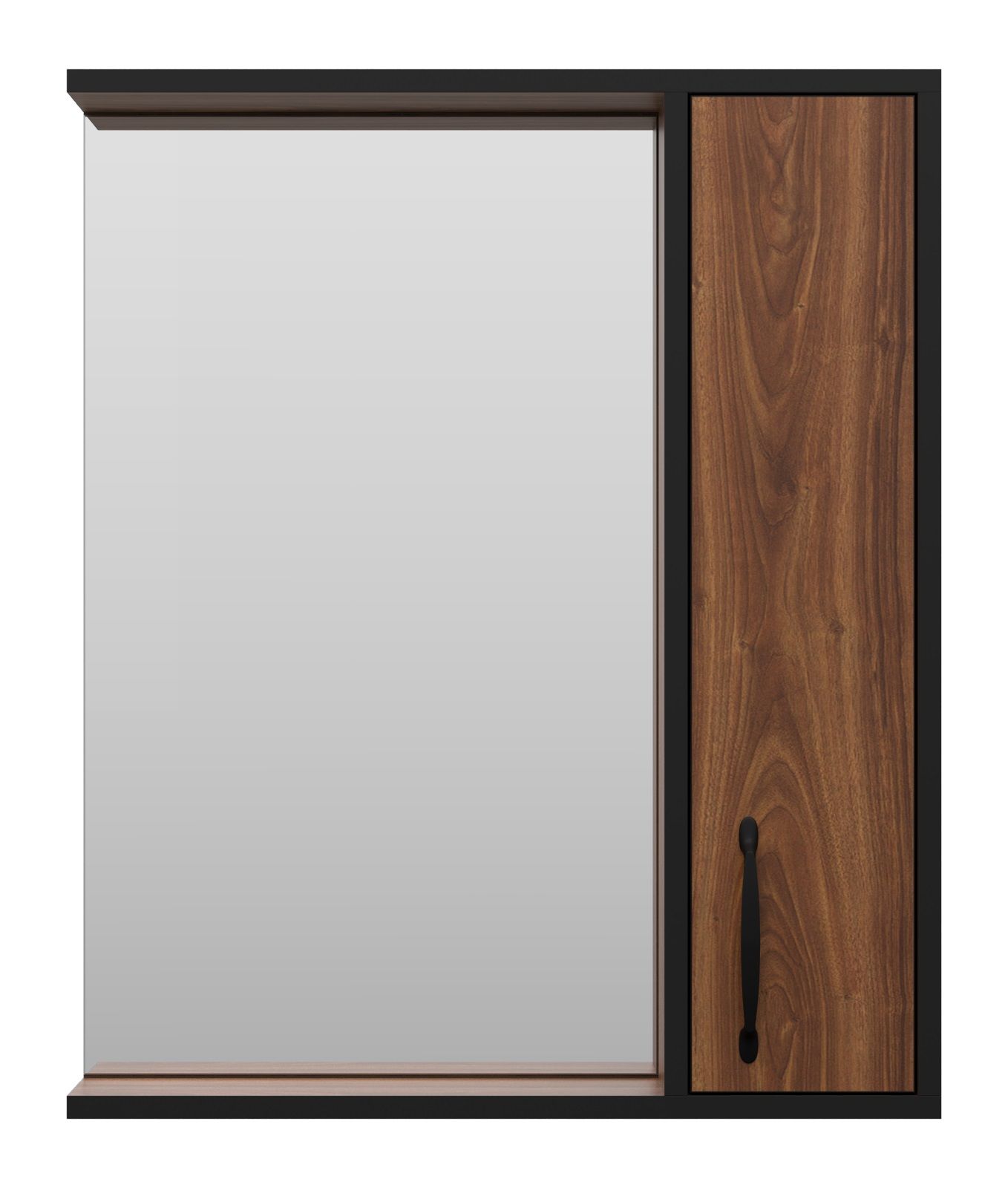 Зеркальный шкаф Misty Кедр 60см правый чёрный/орех