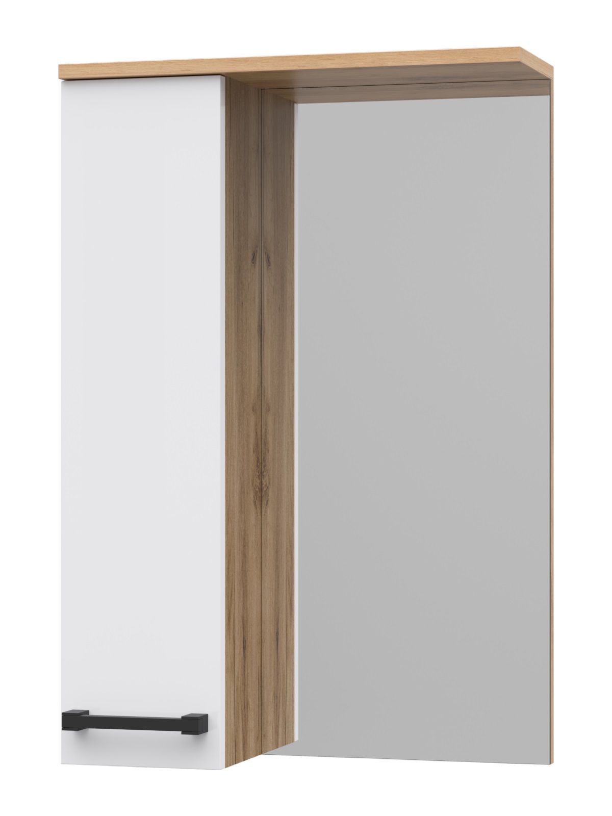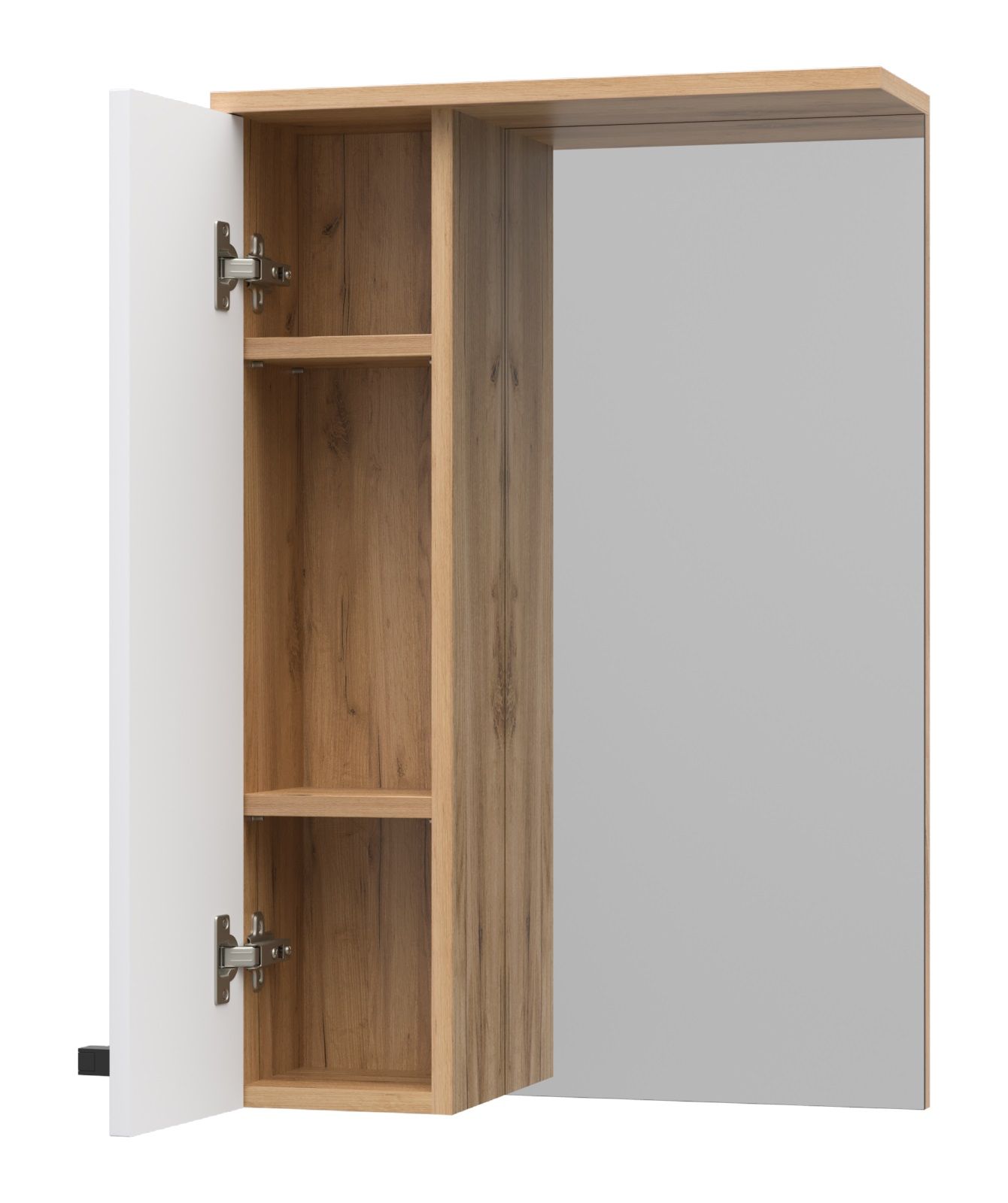 Зеркальный шкаф Misty Крафт 50см левый белый/дуб крафт золотой