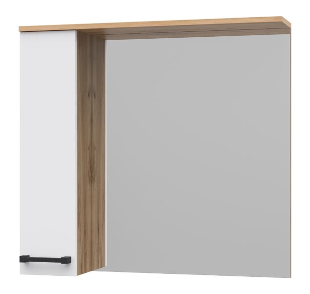 Зеркальный шкаф Misty Крафт 80см левый белый/дуб крафт золотой