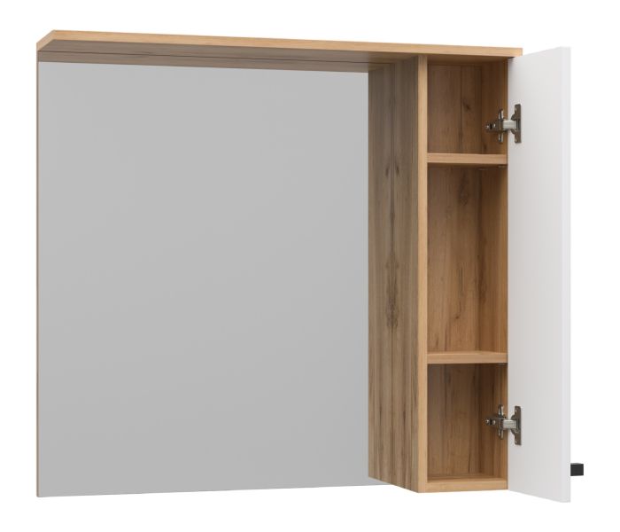 Зеркальный шкаф Misty Крафт 80см правый белый/дуб крафт золотой