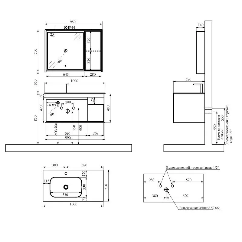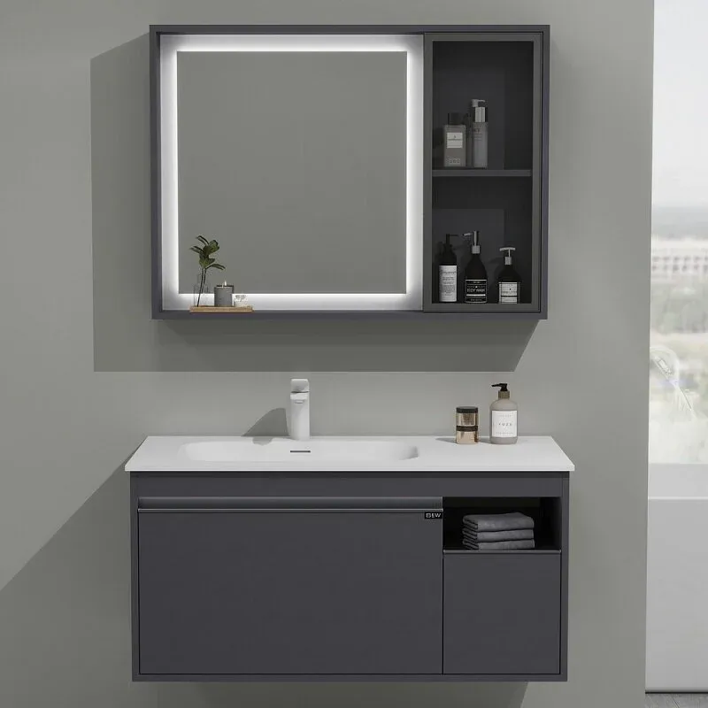 Новинка датского бренда Black&White  в габаритных размерах 100×52 см.В концепции изделия лежит свободное пространство для хранения косметических принадлежностей, а также трендовое направление в создании мебели для ванной комнаты – смещение чаши для расширения полезной площади на столешнице. Корпус изготовлен из девятислойной фанеры и окрашен эмалью серого цвета, такая комбинация позволяет сделать корпус максимально влагостойким. Раковина — столешница производится из искусственного камня на основе минералов-Corian. Материал не обладает пористостью, а также приятен тактильно. Фурнитура для открывания ящиков установлена компании UniHopper с доводчиками. U 910 продукт с широким функционалом и эргономикой, который наполнит ванную комнату скандинавским стилем.
