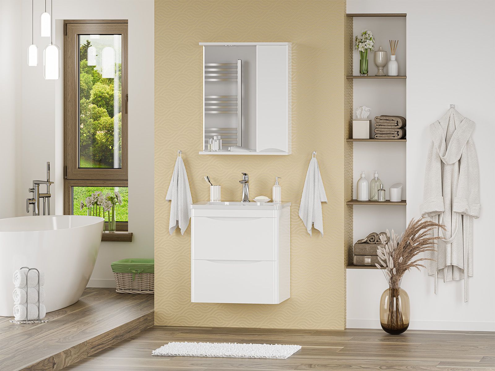 Зеркальный шкаф для ванной комнаты – это стильный акцент, который может преобразить любое пространство. С его элегантными линиями и продуманным дизайном, он идеально вписывается в современный интерьер. Внешняя поверхность шкафа, выполненная из качественных материалов, отражает свет, создавая ощущение простора и уюта.Внутреннее содержание шкафа умело организовано: разнообразные полки и отсеки позволяют удобно разместить все необходимые аксессуары – от косметики до бытовой химии. Зеркало, интегрированное в фасад, визуально расширяет пространство и облегчает утренние рутинные процедуры.Зеркальный шкаф для ванной комнаты – это идеальное сочетание красоты и практичности, которое станет незаменимым помощником в вашем дневном ритме.