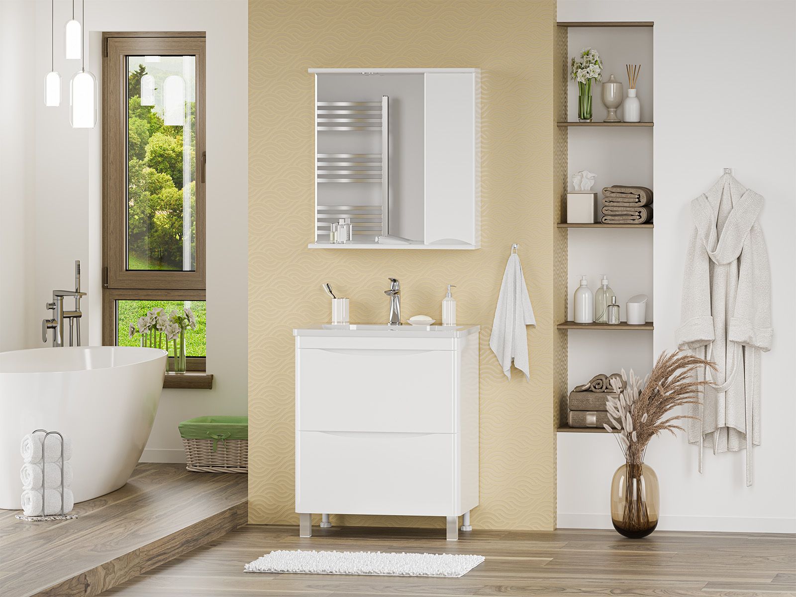 Зеркальный шкаф для ванной комнаты – это стильный акцент, который может преобразить любое пространство. С его элегантными линиями и продуманным дизайном, он идеально вписывается в современный интерьер. Внешняя поверхность шкафа, выполненная из качественных материалов, отражает свет, создавая ощущение простора и уюта.Внутреннее содержание шкафа умело организовано: разнообразные полки и отсеки позволяют удобно разместить все необходимые аксессуары – от косметики до бытовой химии. Зеркало, интегрированное в фасад, визуально расширяет пространство и облегчает утренние рутинные процедуры.Зеркальный шкаф для ванной комнаты – это идеальное сочетание красоты и практичности, которое станет незаменимым помощником в вашем дневном ритме.