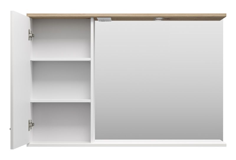 Зеркальный шкаф с подсветкой Misty Респект 120см левый белый/дуб Артизан