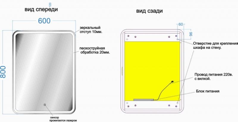 Зеркальный шкаф с подсветкой Sancos Diva DI600 60см белый купить