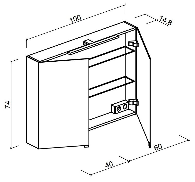 • Размер: Ш100 х В74 х Г14.8 см
