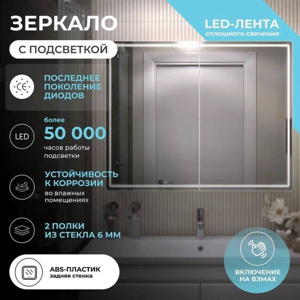 Зеркальный шкаф VIGO Geometry 119, 100 см. 2 дверцы, петли с механизмом доводчика, 4 стеклянных полки, светодиодная подсветка по периметру, бесконтактное включение (на взмах).