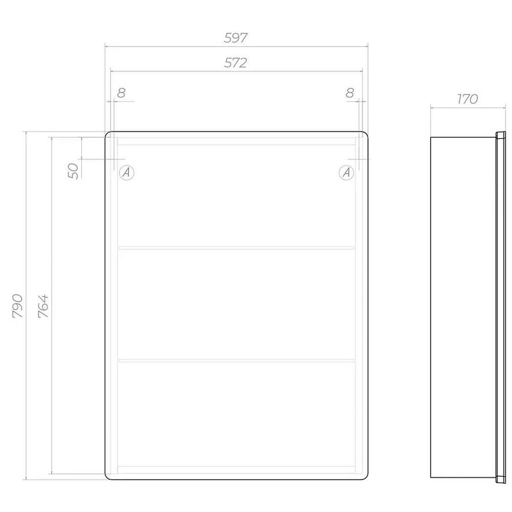 Зеркальный шкаф VIGO Geometry 301, 60 см. 1 дверца, петли с механизмом доводчика, 2 стеклянных п... Подробнее