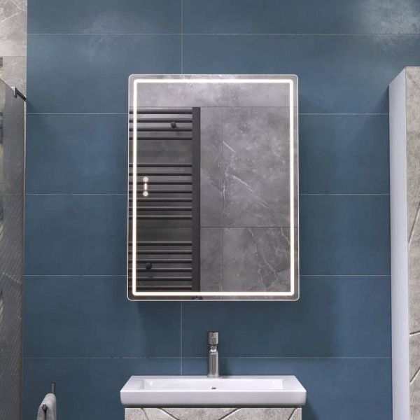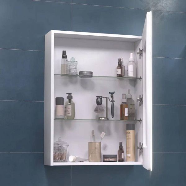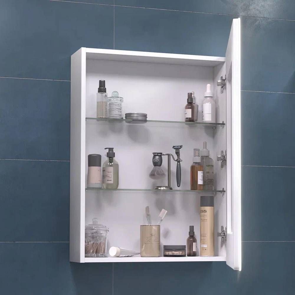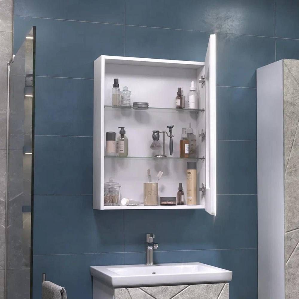 Зеркальный шкаф VIGO Geometry 301, 60 см. 1 дверца, петли с механизмом доводчика, 2 стеклянных полки, светодиодная подсветка по периметру, датчик присутствия, сенсорное включение, функция антизапотевания, диммер.
