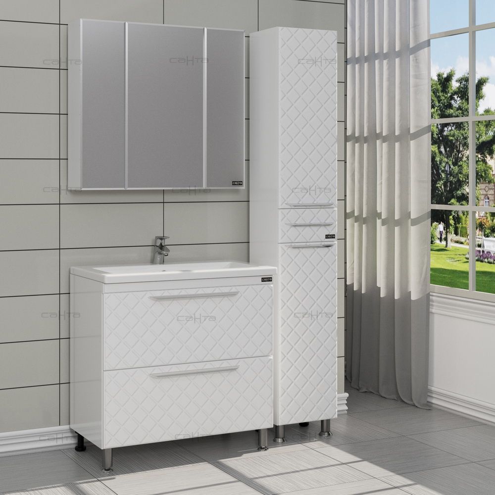 Зеркало-шкаф СанТа не только функциональный предмет интерьера ванной комнаты, но замечательное эргономичное дополнение дизайна, как небольшого, так и крупного помещения.Компания СанТа использует при производстве высококачественные водоотталкивающие материалы (ВЛДСП), соответствующие всем необходимым требованиям безопасности. Серия отличается превосходным дизайном с соблюдением всех значимых элементов современного стиля. Основным цветом, в котором выполнено шкаф-зеркало СанТа является белый, отлично подходящий большинству дизайнерских решений. Шкаф-зеркало предусматривает удобную и вместительную систему хранения, состоящую из полочек.Страной бренда СанТа является Россия, все товары производятся с выполнением соответствующих стандартов качества, что позволяет быть полностью уверенными в долговечности и надежности. Зеркало-шкаф СанТа это абсолютный комфорт в современной ванной комнате.
