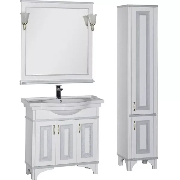 Зеркало «Валенса» — новое предложение для тех, кто решил создать ванную комнату в стиле «неоклассика», для которого характерны прямые линии, лёгкость и изящность, стремление к комфорту, гармонии. Большое белое зеркало прекрасно сочетается с белоснежной раковиной из санфаянса и пропорциями тумбы комплекта мебели Aquanet «Валенса», наполняя ванную комнату теплом и уютом. Элегантные бра в виде бутонов цветов создают мягкое освещение, только их необходимо заказать. Aquanet применяет простую и надежную систему подвеса зеркал, положение которых удобно регулировать на монтажной пластине по горизонтали и вертикали. ВНИМАНИЕ! Светильники на фото Луизиана WT-260 являются базовыми для данной модели. Они не входят в стоимость.