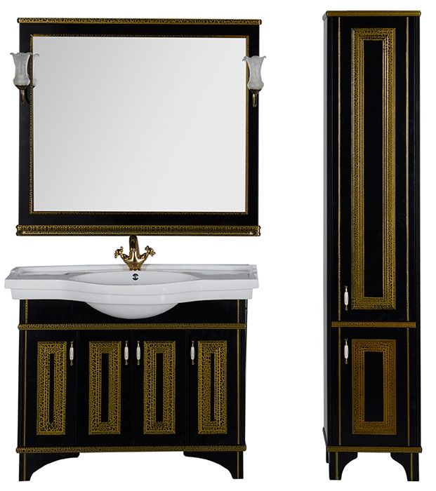 Зеркало Aquanet Валенса 180295 110 см чёрный краколет/золото купить