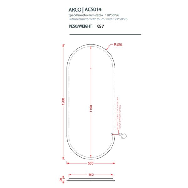 Зеркало Artceram Arco ACS014 с подсветкой