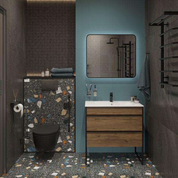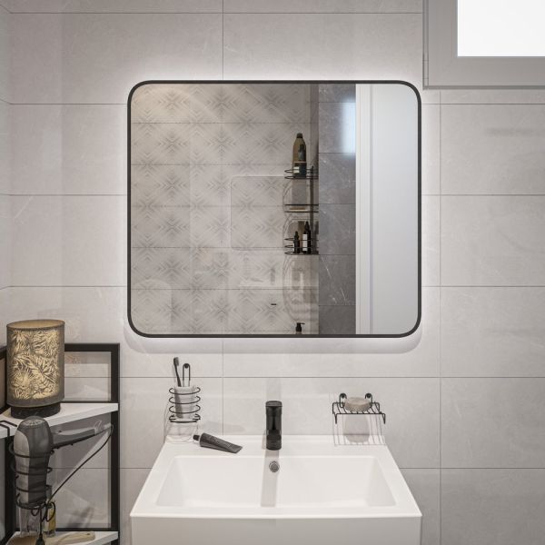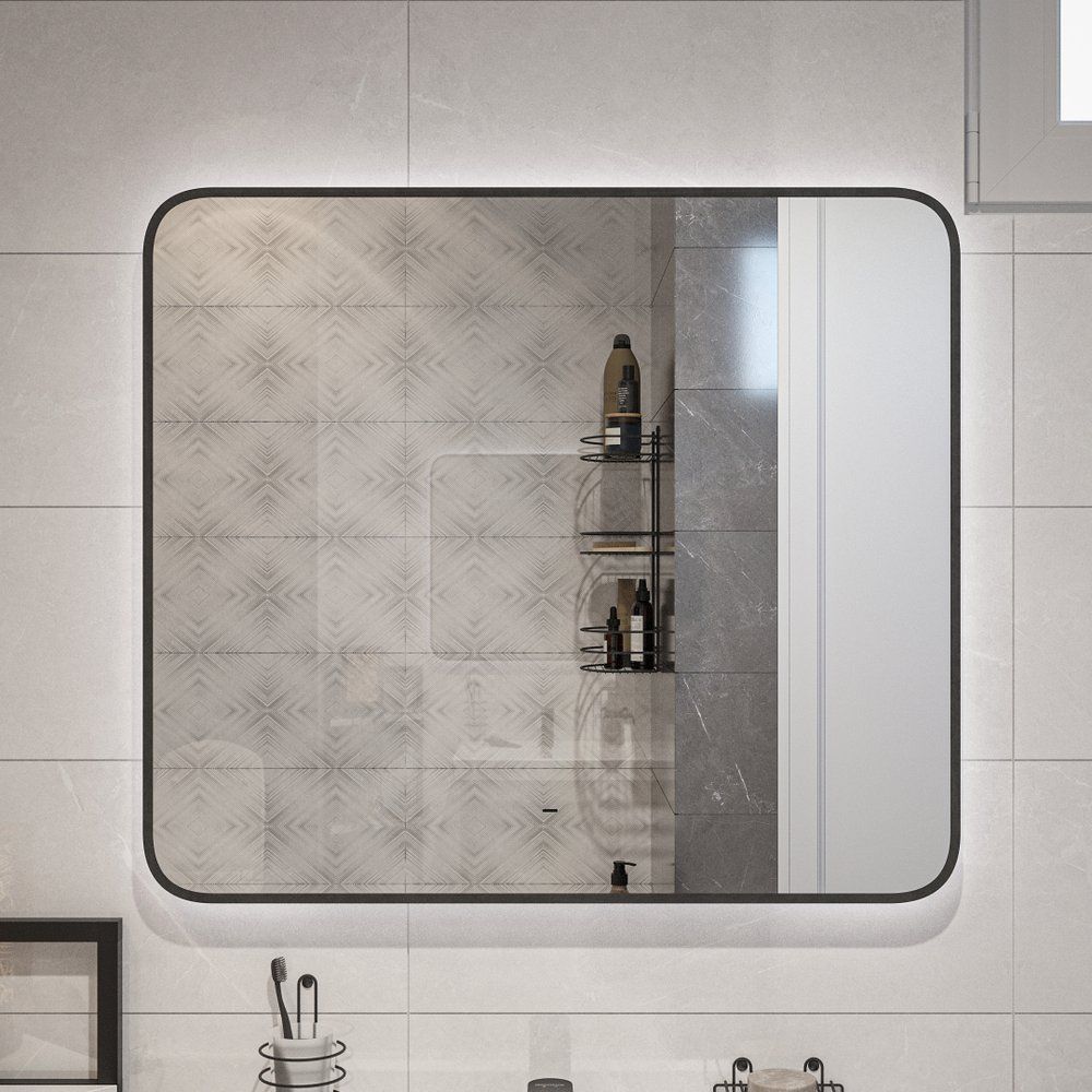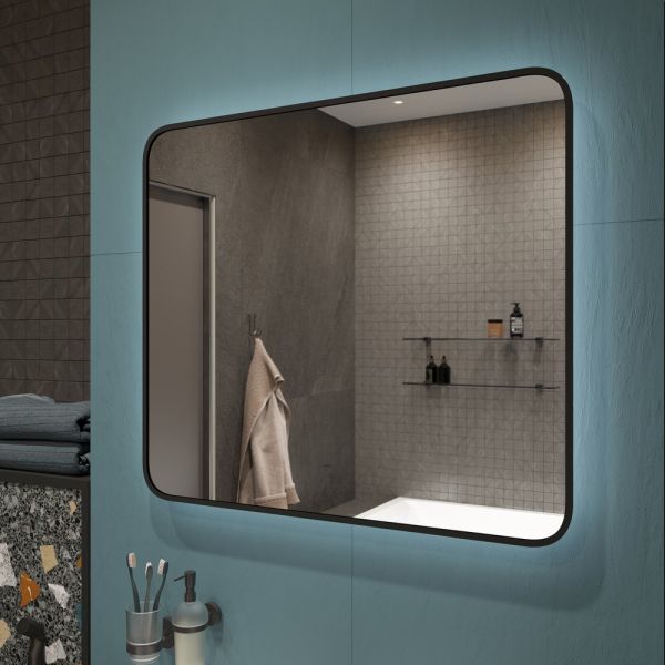 Зеркало DIWO Кострома 80 черное, с подсветкой, прямоугольное, инфракрасный выключатель