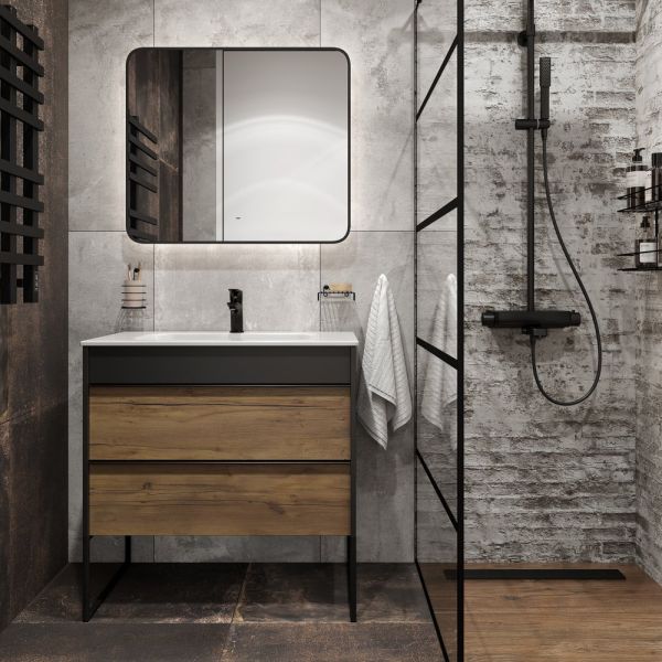 Зеркало DIWO Кострома 80 черное, с подсветкой, прямоугольное, инфракрасный выключатель купить