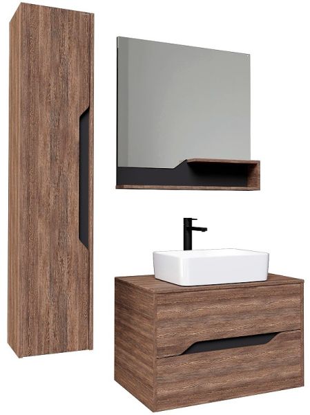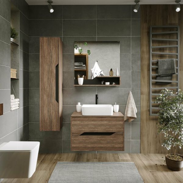 Зеркало Grossman Лайф 208008 с полками 80см винтажное дерево тёмное/графит