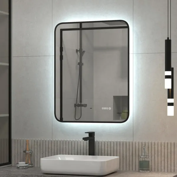 Зеркало для ванной Reflexion Black View RF4001BV бесконтактным сенсором диммером часами черной окантовкой 50х70