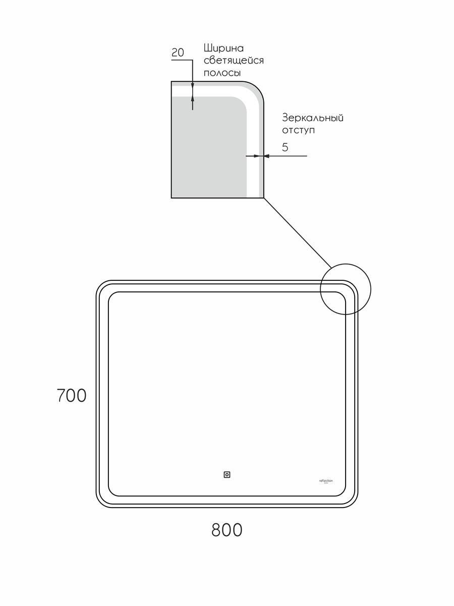 Зеркало Reflexion Magic с LED подсветкой и сенсорным выключателем 800*700мм