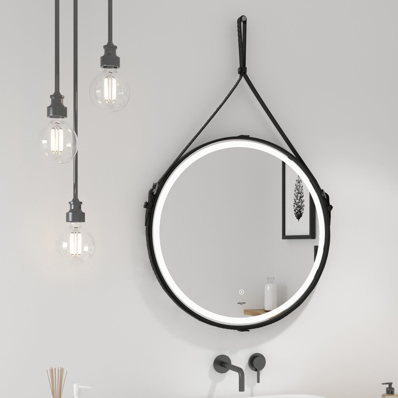 Зеркало Reflexion Skin RF5325SK с LED подсветкой сенсором на ремне из натуральной кожи черного цвета 65х65 купить