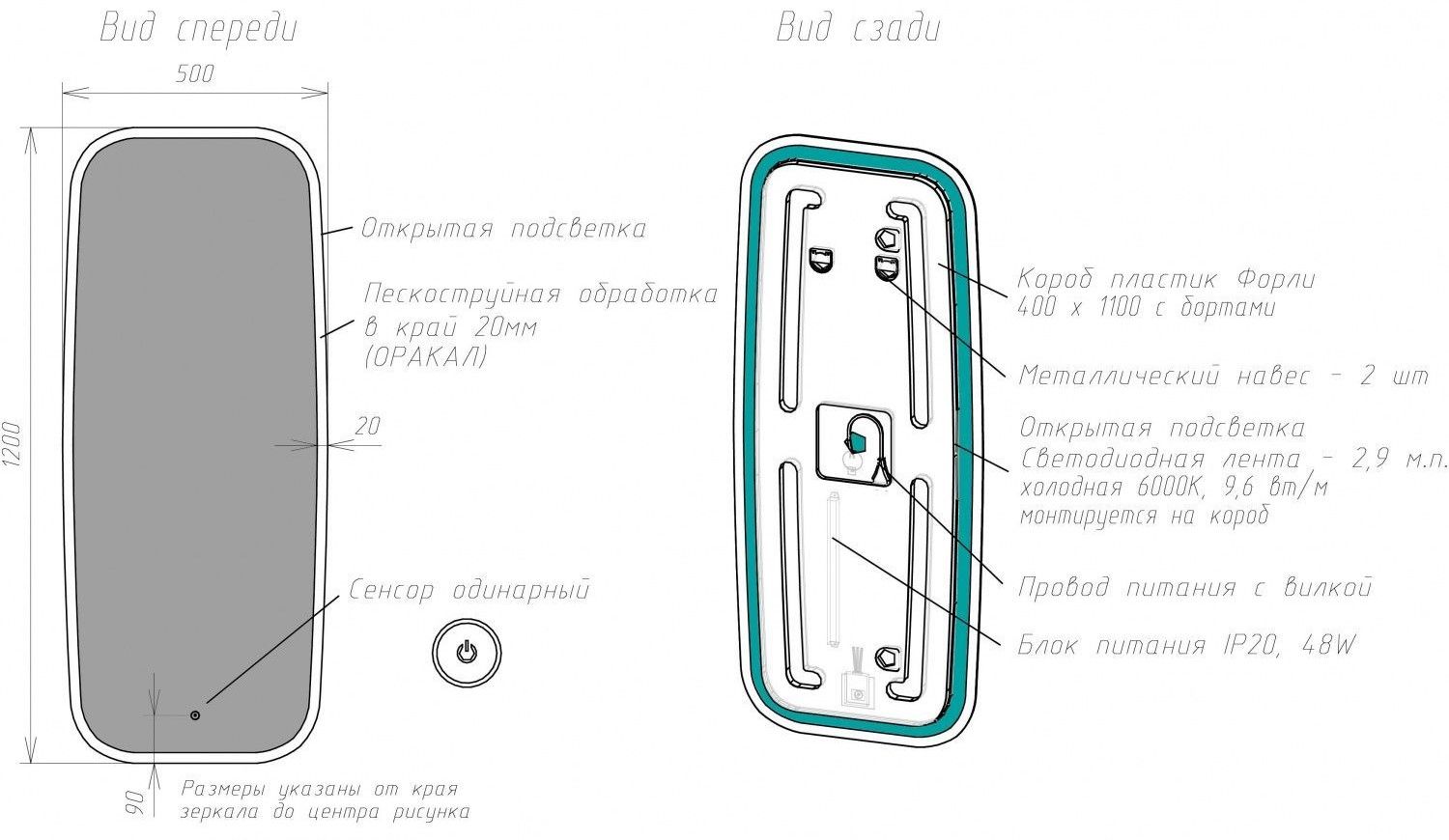 Зеркало с холодной подсветкой Art&Max Forli 50x120см AM-For-500-1200-DS-F купить