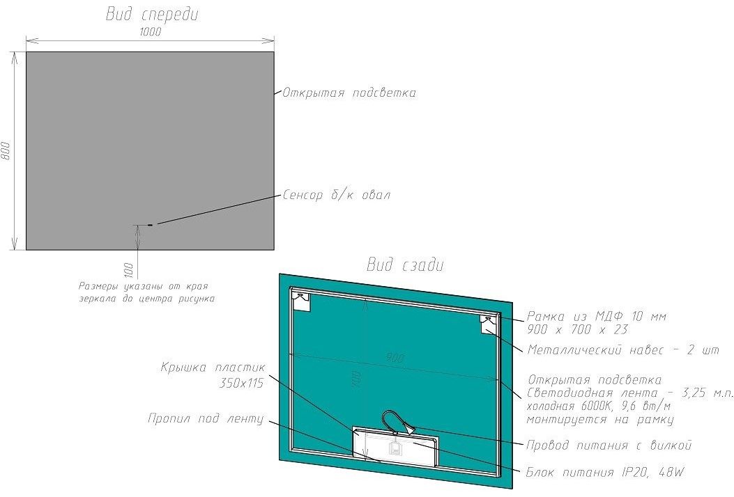 Оснащение: зеркало, крепеж, коробка, инструкция.