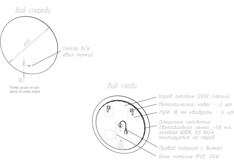 Зеркало с холодной подсветкой Art&Max Sanremo 65см AM-San-645-DS-F